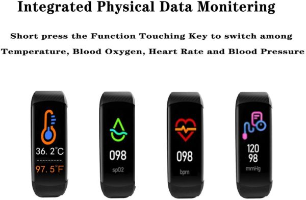 • Smart Watch, Fitness Tracker with Body Temperature Thermometer Blood Oxygen Heart Rate Blood Pressure Monitor Sleep Monitor Step Counter Pedometer Calorie Counter IP67 Waterproof for Women Men Kids