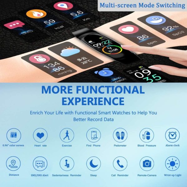• vikano 2021 Fitness Tracker, Waterproof Smart Watch with Body Temperature Thermometer Heart Rate Blood Pressure Oxygen Monitor Sleep Monitor Step Counter Calorie Counter